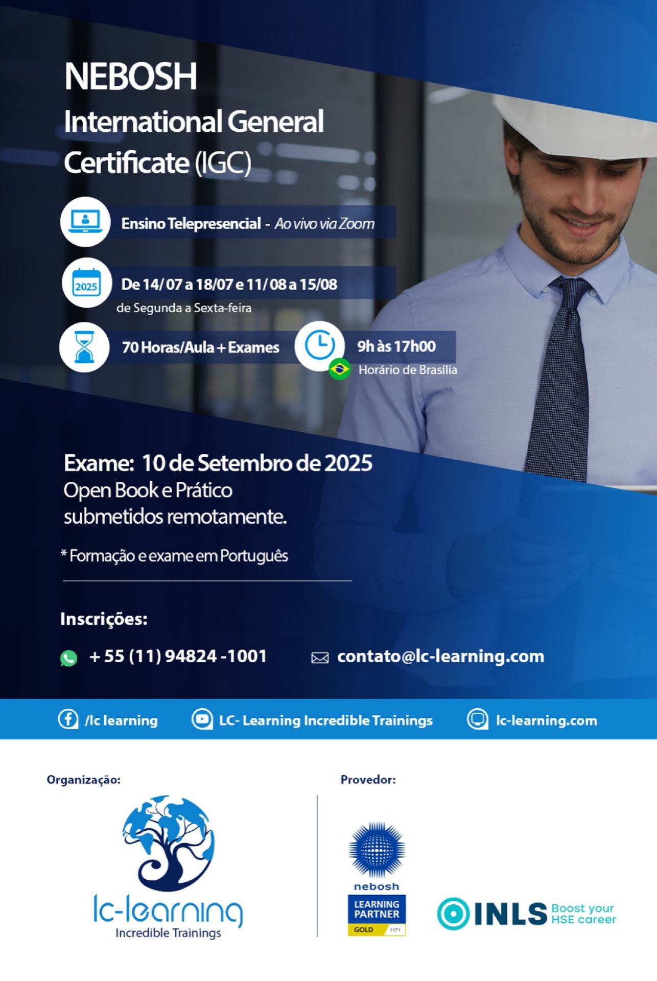 NEBOSH International General Certificate in Occupational Health and Safety é uma das mais populares e reconhecidas qualificações de segurança e saúde do seu tipo no mundo. É amplamente procurada por pessoas que querem ver as suas competências na área da saúde e segurança no trabalho reconhecidas globalmente. Os detentores desta qualificação credenciada são capazes de identificar, avaliar e controlar uma ampla gama de riscos no local de trabalho. A qualificação incentiva uma abordagem pragmática de gestão de riscos e do conteúdo que pode ser aplicado em locais de trabalho ou em qualquer lugar do mundo. Globalmente, os empregadores encontram no International General Certificate um meio para melhorar a cultura de segurança das suas organizações, fornecendo uma sólida compreensão dos princípios de gestão de risco.