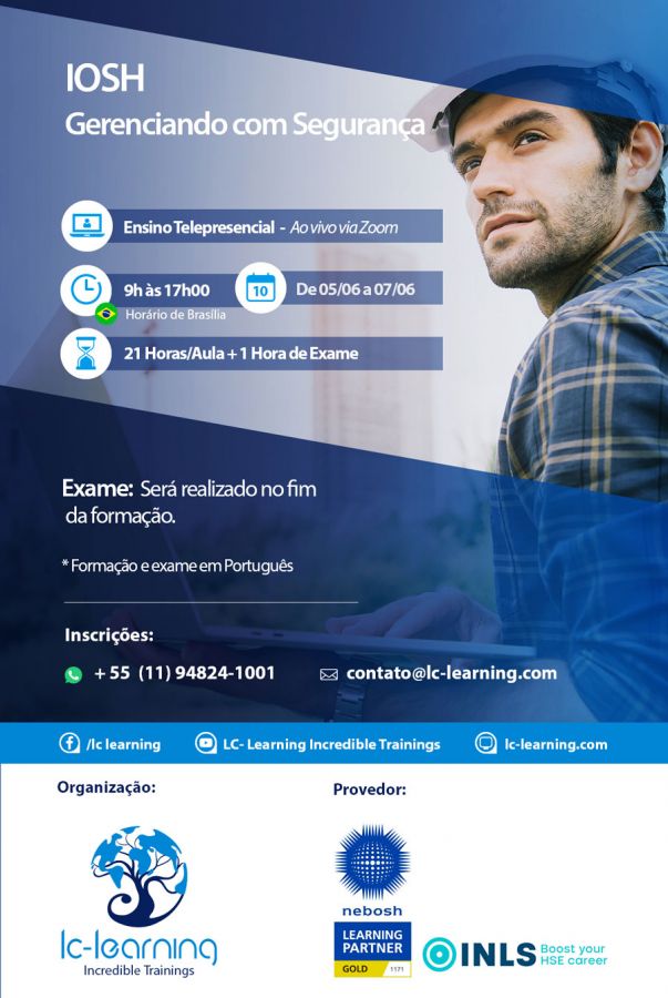 IOSH: é o órgão constituído e a maior organização associativa para profissionais de saúde e segurança Site: https://iosh.com/ iNLS: A iNLS Solutions é uma empresa de formação e consultoria especializada nas áreas de Ambiente, Saúde e Segurança. Site: http://inls-solutions.com LC-LEARNING: A LC-Learning oferece cursos em SSMA mundialmente reconhecidos, no idioma local, onde quer que esteja. Atuando com parceiros renomados e referenciados pelo saber. Site: http://lc-learning.com